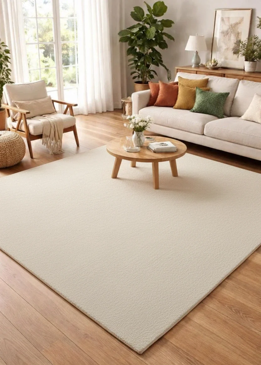 Available in a wide palette including Ivory, Charcoal, Linen, Slate, Gold, Midnight Blue, Sage, Blush, Aqua, Mink, and Terracotta, the Essence collection seamlessly complements various décor styles. Standard rectangular and round sizes are offered, with precise dimensions listed in both feet and centimeters, allowing easy selection for different spaces.